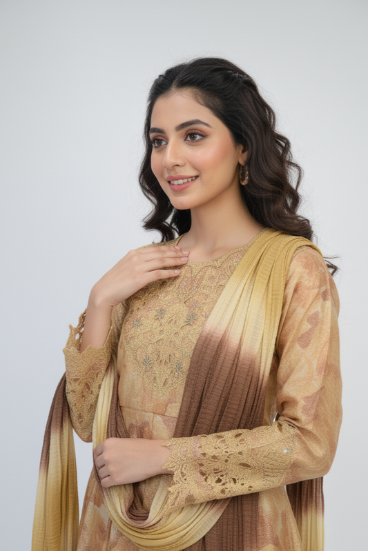 Elegant Embriodered Crinkle Chiffon 3-Piece Suit MMG-GG-02