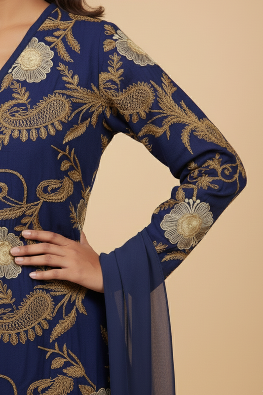 INDO-WESTERN EMBROIDERED 4-PIECE KURTA SET MMG-870