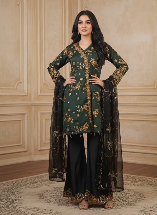 RUKHSAR|3-PIECE ORGANZA NET EMBROIDERED KURTA SET MMG-1074