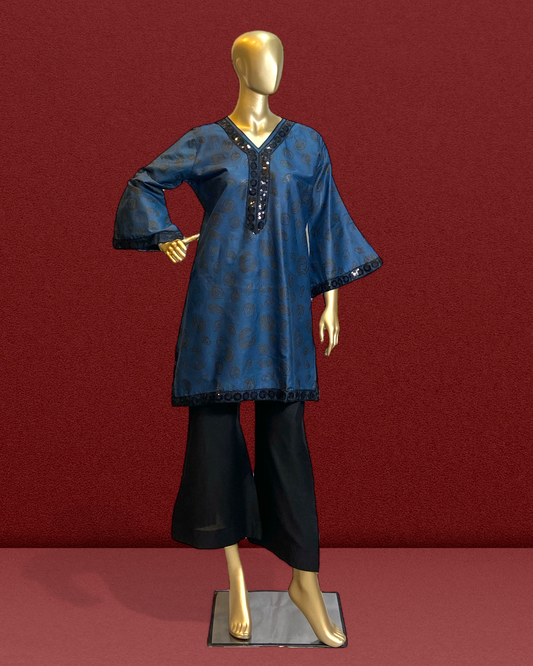 Regular price Rs.4,199.00 PKRRegular priceUnit price / perRs.6,499.00 PKRSale price Rs.4,199.00 PKRINDO-WESTERN EMBROIDERED 4-PIECE KURTA SET MMG-870