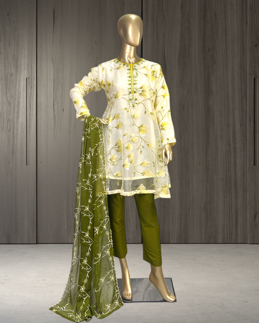 FLORAL|3-PIECE LINING ORGANZA KURTA SET MMG-1039