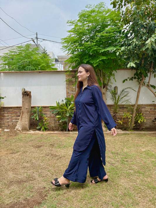 WOMEN'S 2-PIECE SET CREPE FABRIC|CASUAL FIT BACKTAIL SHIRT WITH BELL PENT