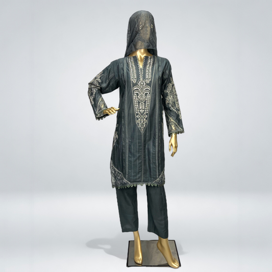 AGOSH GLAMOUR|3-PIECE EMBROIDERED KURTA SET GREY MMG-963
