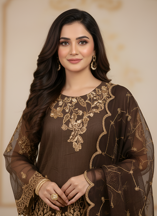 ZARI LUXE FROCK CHOCOLATE MMG-924