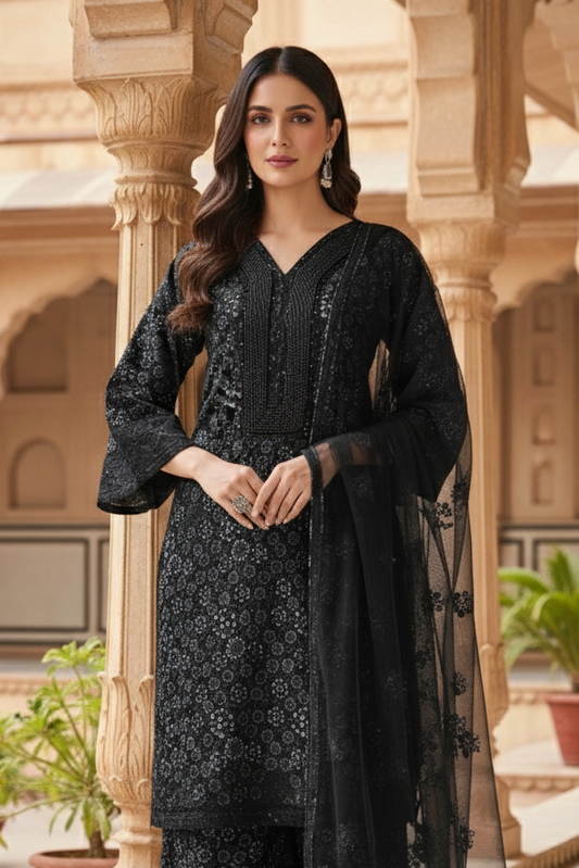 MIDNIGHT BLOOM TUNIC SEQUINING KURTA SET 2PIECE MMG-D 16