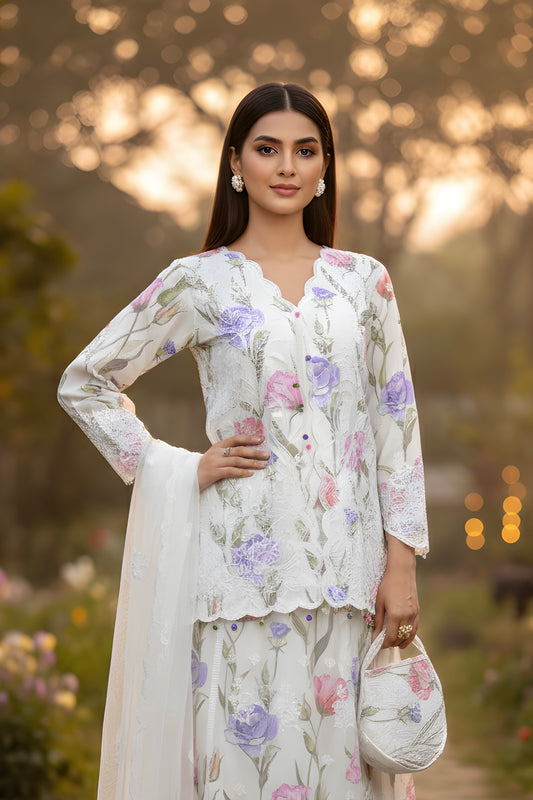 DIGITAL PRINTED SILK CHIFFON EMBROIDERED FROCK SET
