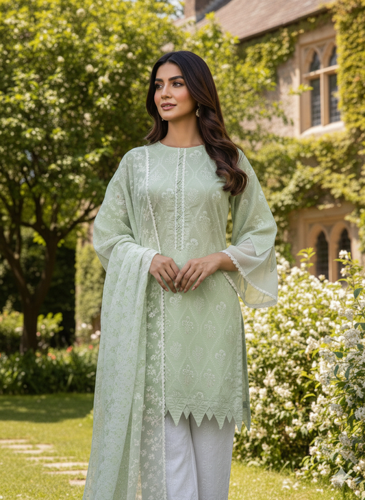 PURE COTTON SEQUINCE EMB FROCK SET MMG-1216
