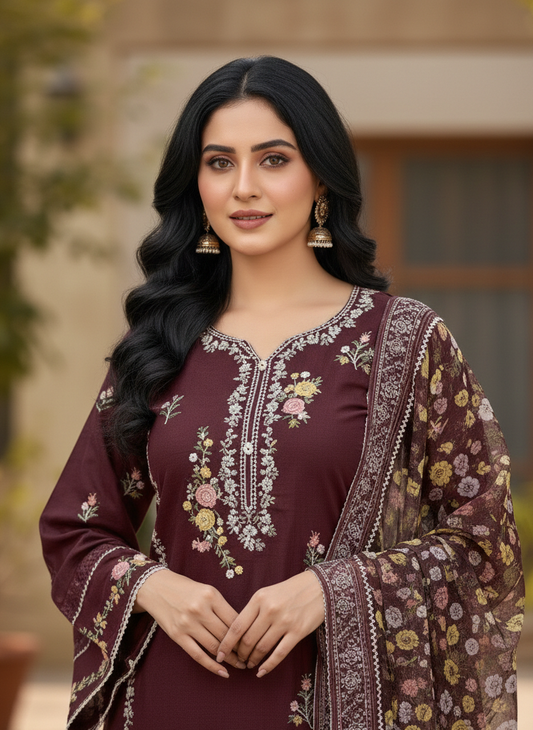ROYALCOT EMB KURTA SET PURE COTTON MMG-1193