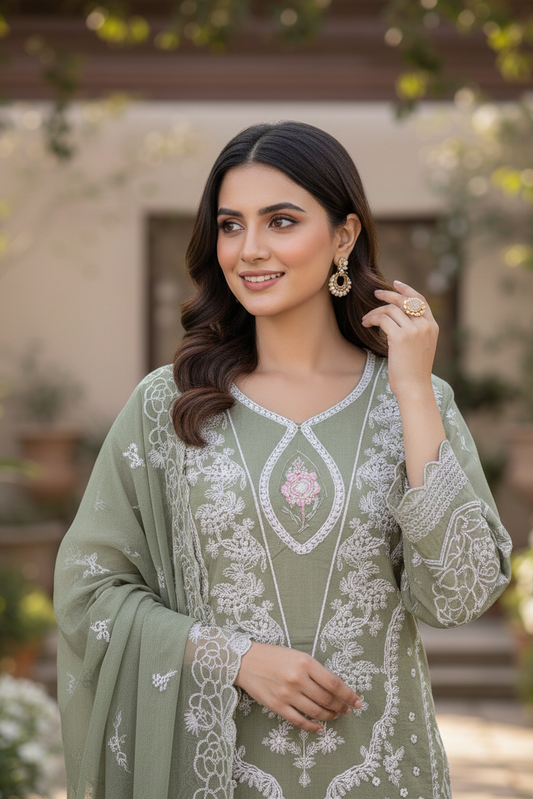 2-PIECE DORIA COTTON EMB KURTA SET MMG-1008