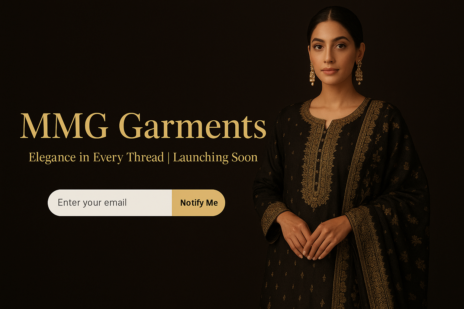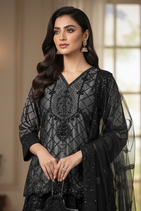 Elegant Black 3-Piece Chiffon Suit with 3D Embroidery MMG-760