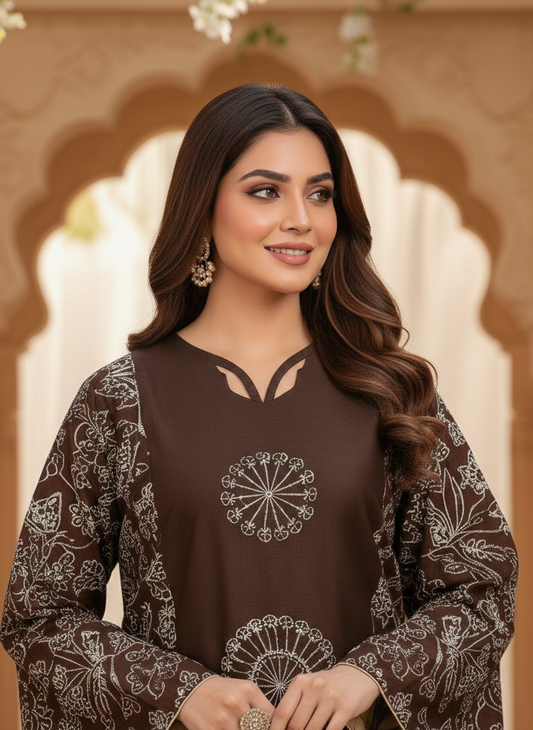 Regular price Rs.6,499.00 PKRRegular priceUnit price / perRs.9,999.00 PKRSale price Rs.6,499.00 PKRZARI LUXE FROCK CHOCOLATE MMG-924