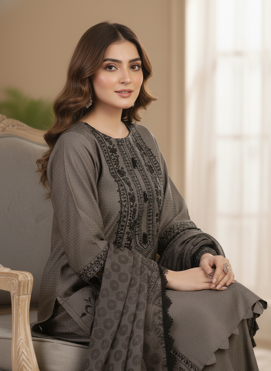AGOSH GLAMOUR|3-PIECE EMBROIDERED KURTA SET GREY MMG-963