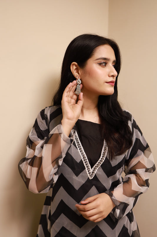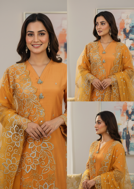Elegant 3-Piece Organza Suit with Embroidered Crinkle Dupatta MMG-819