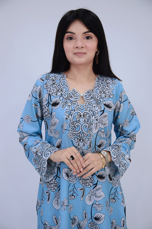 ANARKALI|3-PIECE DIGITAL PRINTED BOSKI SWISS & EMBROIDERED KURTA SET MMG-1068