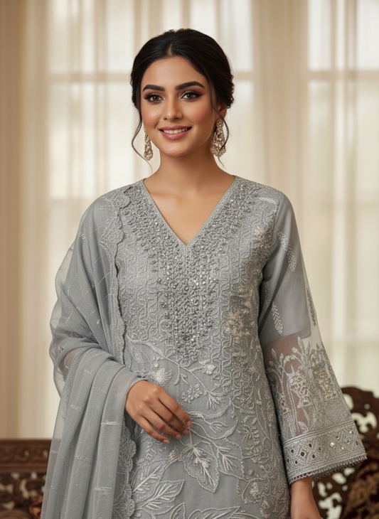 ORGANZA BORING WORK EMB KURTA SET MMG-950