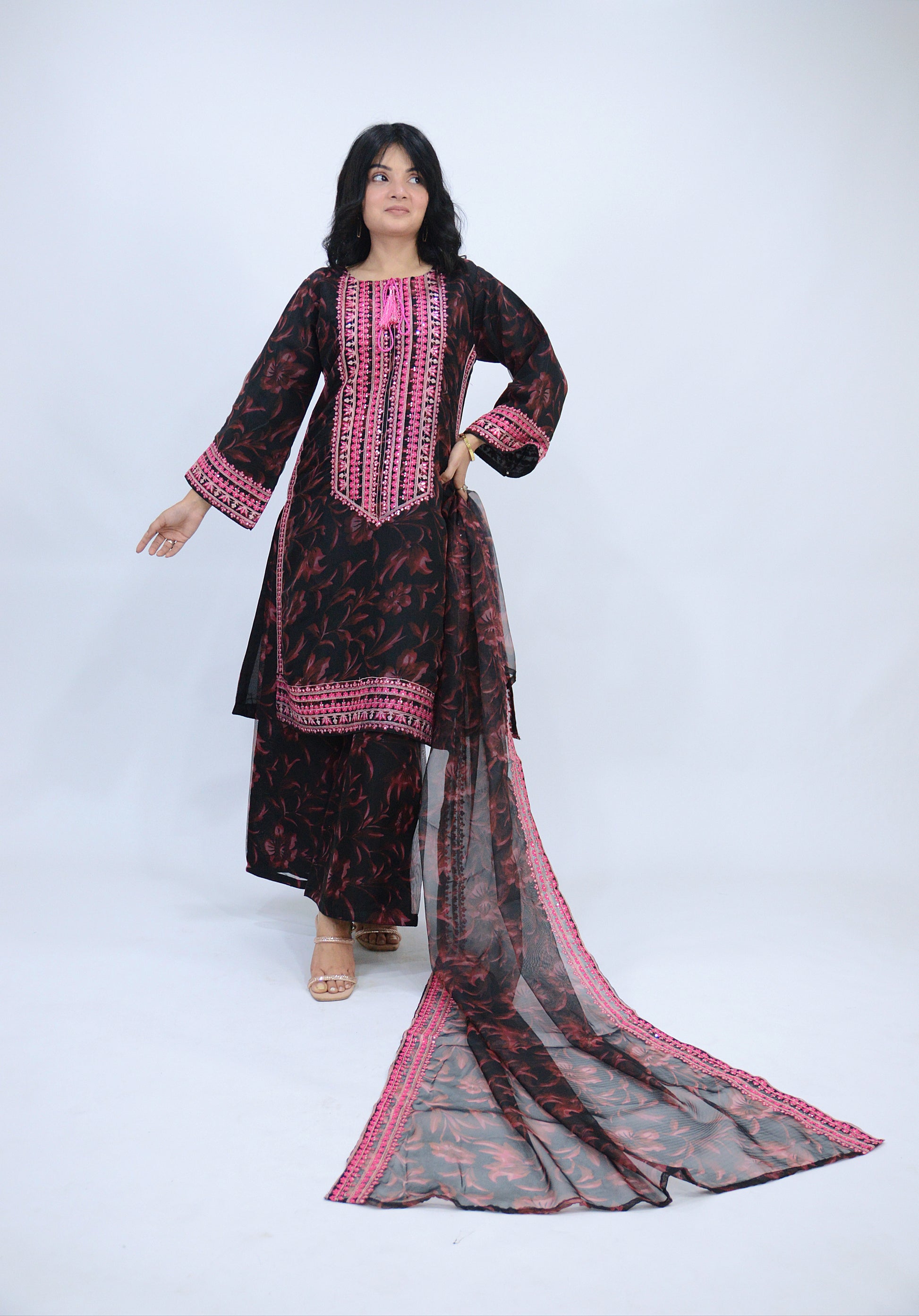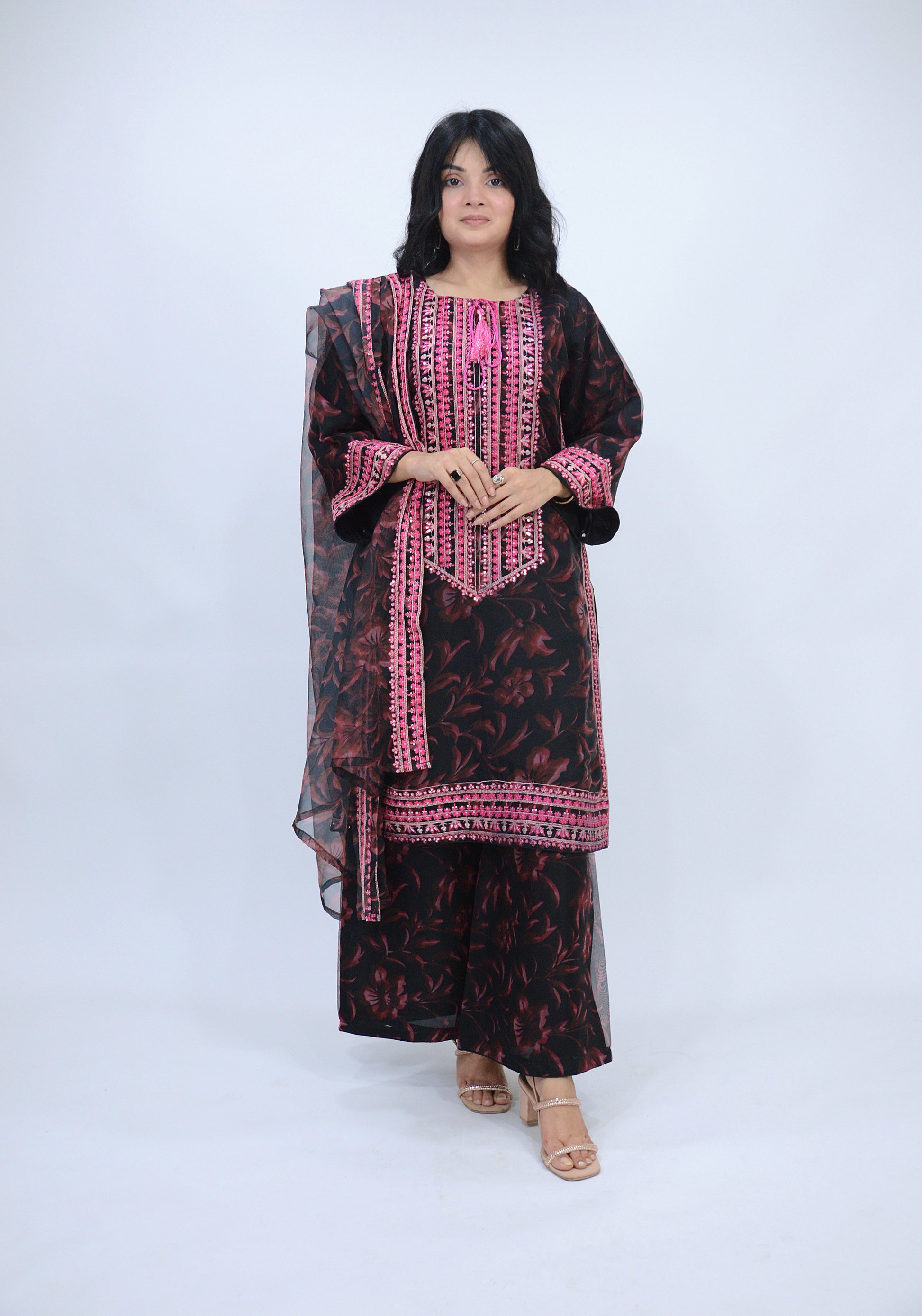 Elevate your style with this luxurious digital printed organza outfit, blending modern artistry with classical charm. Designed for women who appreciate sophistication, this ensemble brings together comfort and elegance.