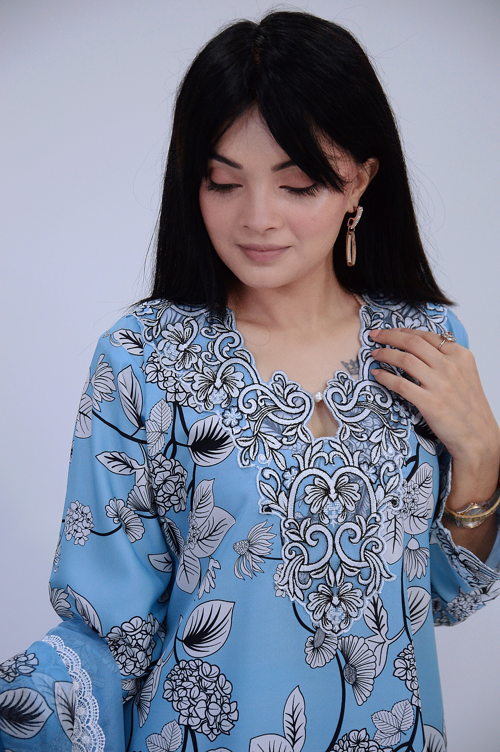 Digital Staple printed shirt with Embroidered cutwork daman patti