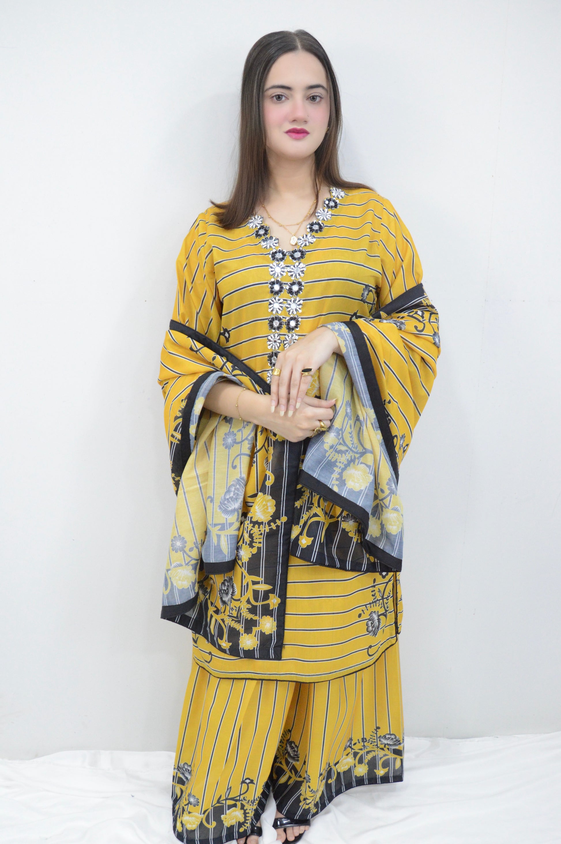 3-Piece Swiss Lawn Twisted Printed Stitched Suit by MMG Garments